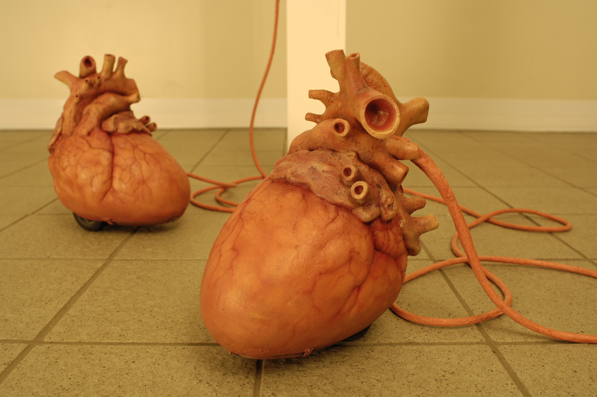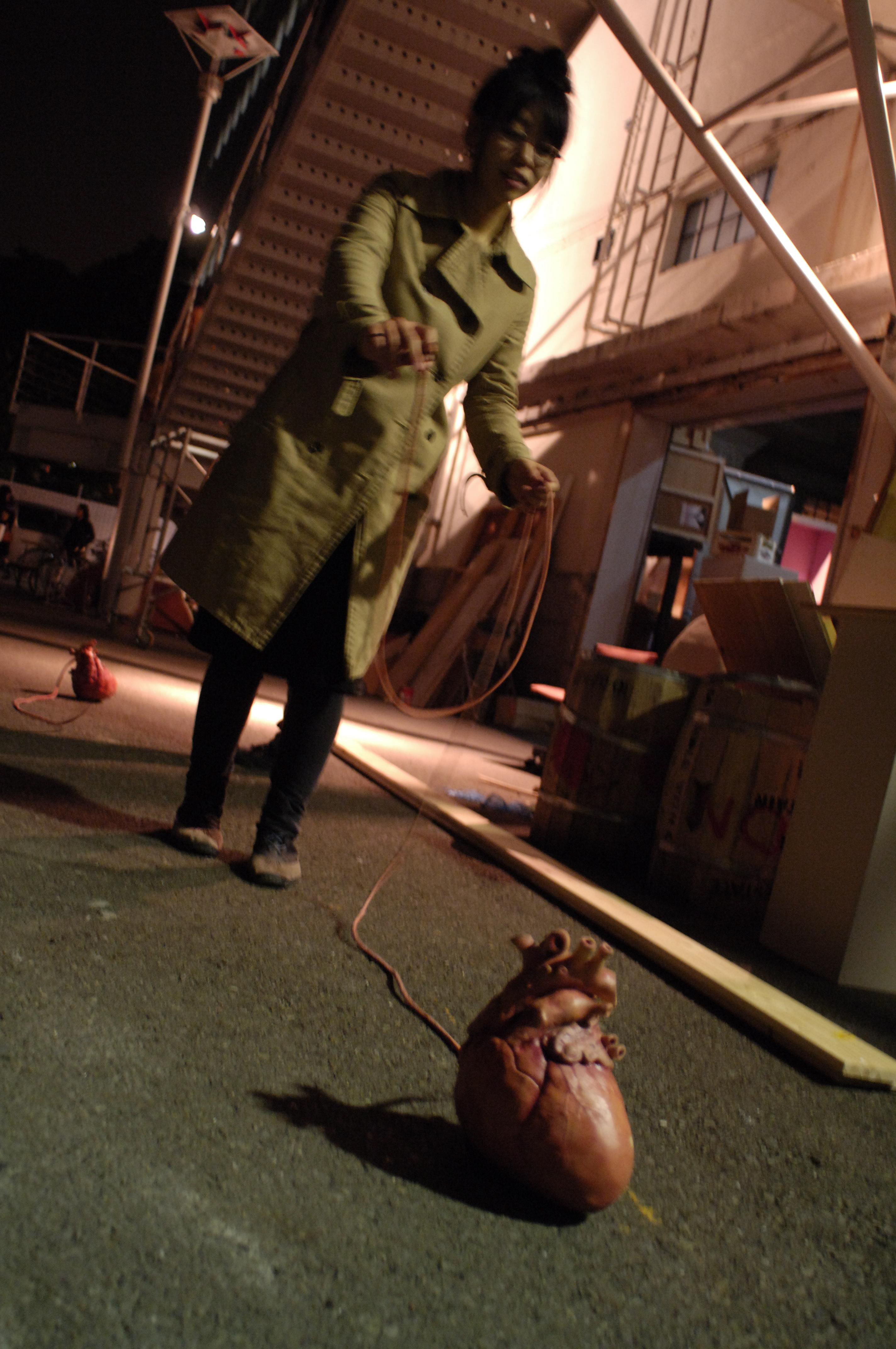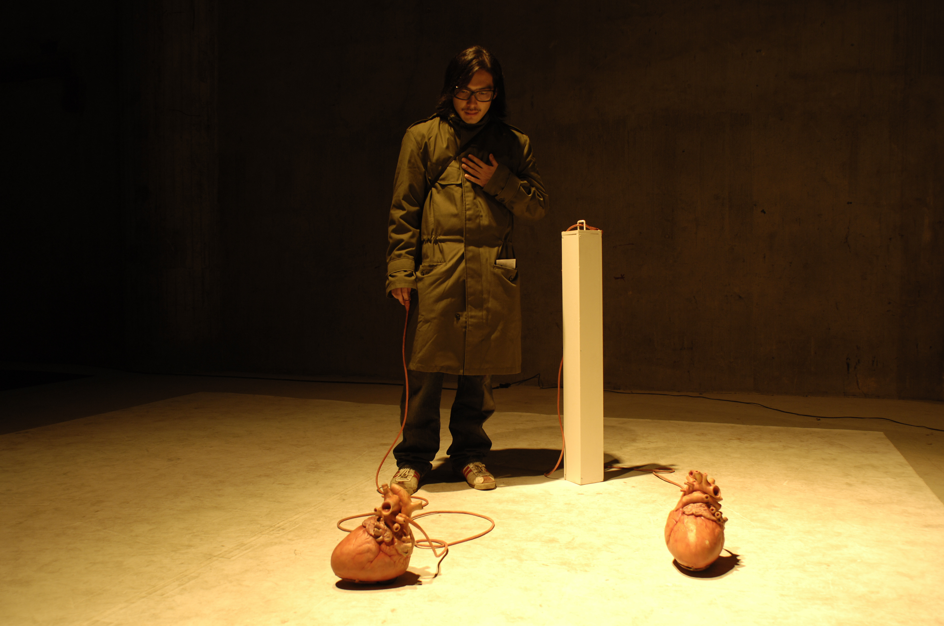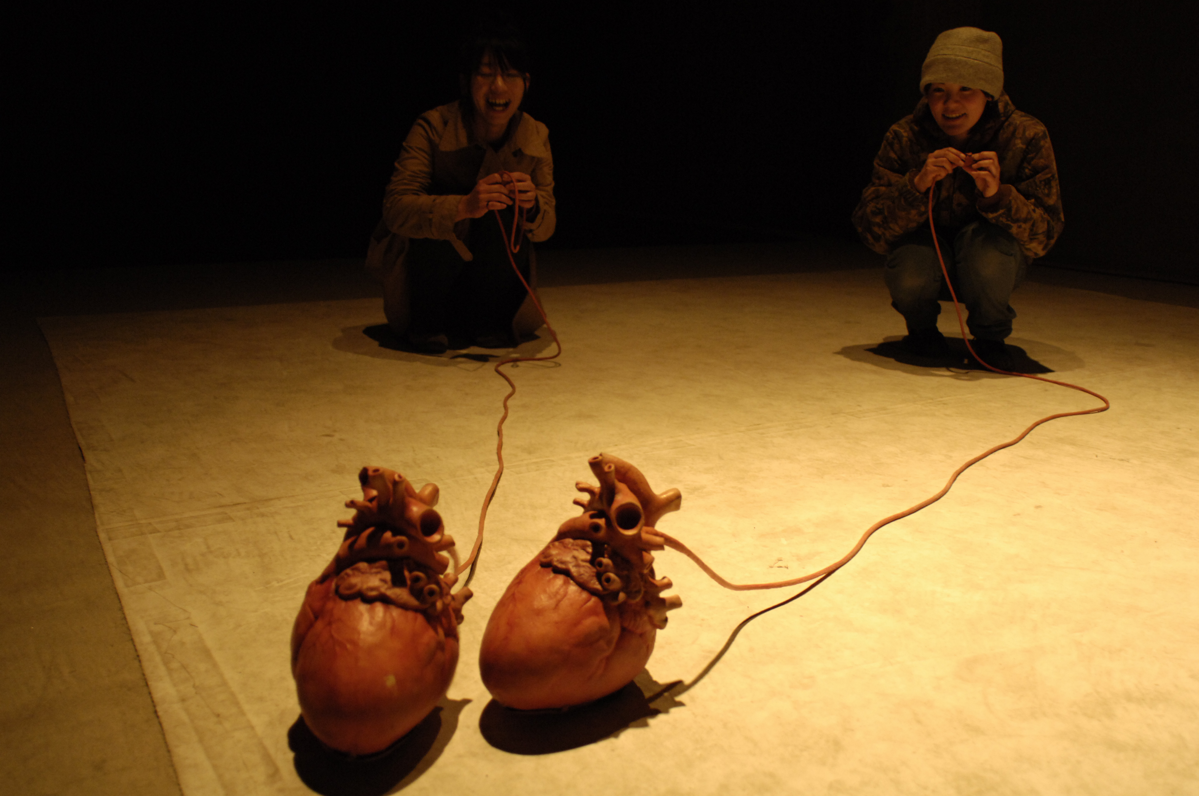 “external_heart” is an interactive art work of which the theme is the "body clock". When the person who experiences applies his or her finger in to the device, the pulse is picked up from the finger.And “external_heart” runs the speed of pulse. The person has an experience pulled to the heart that runs speed of his pulse. The person is invited to the heart that runs speed of the person's pulse.