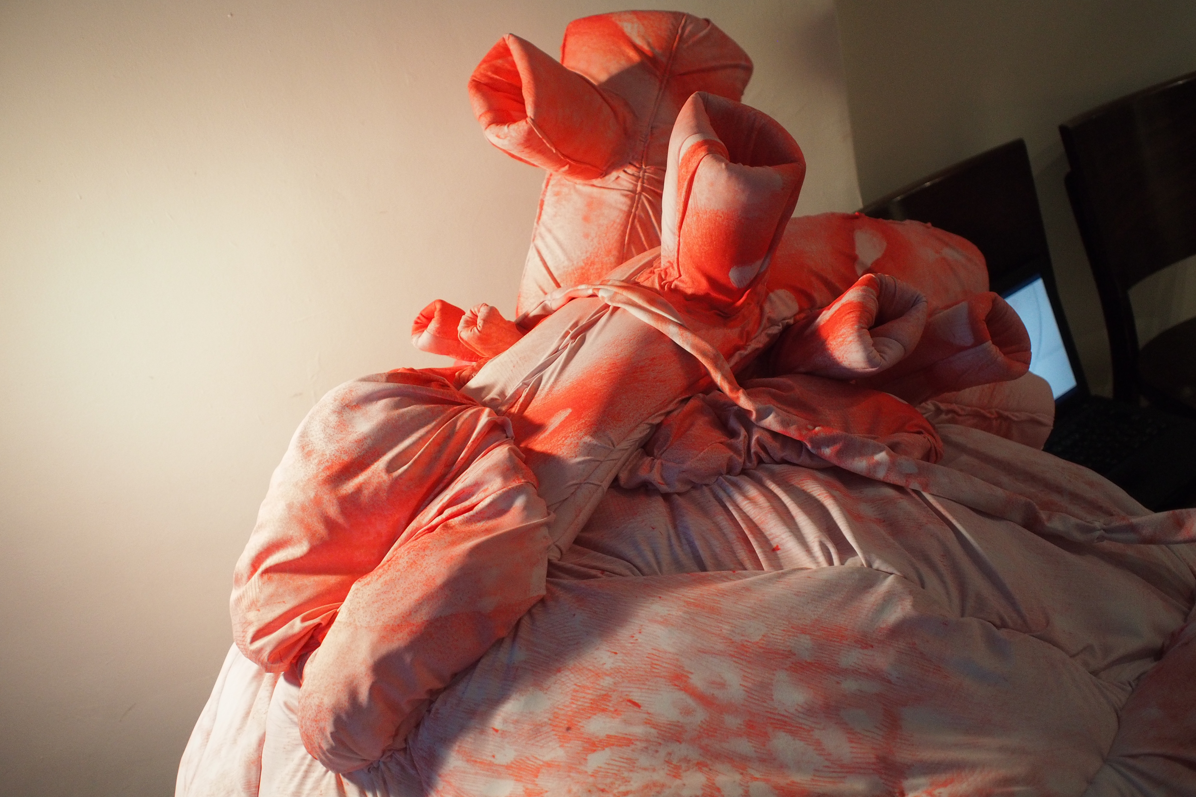 本体から繋がっている心拍センサーに指先を当てると、コンプレッサーが稼働して心臓が拍動する。鑑賞者は触ったり抱きついたりすることで、自分の心臓の動きを身体全体で感じることができるインスタレーション作品である。